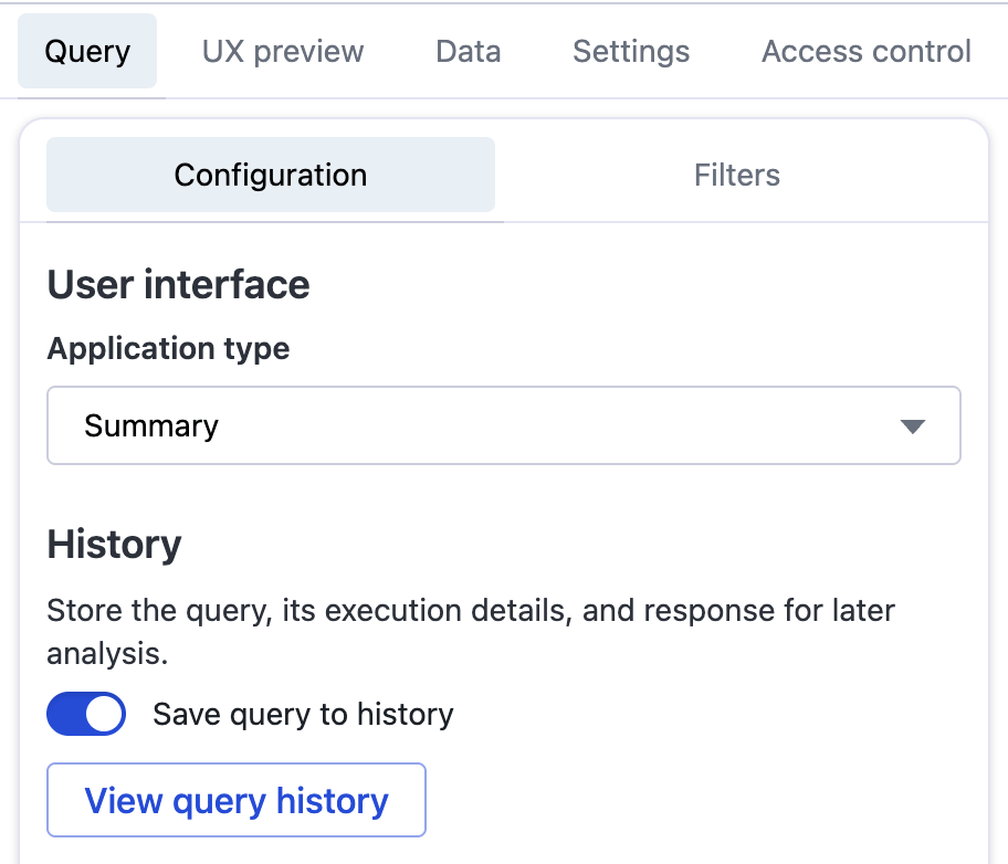 tab. When enabled, Vectara will store each query entered into the console to view within the Query history