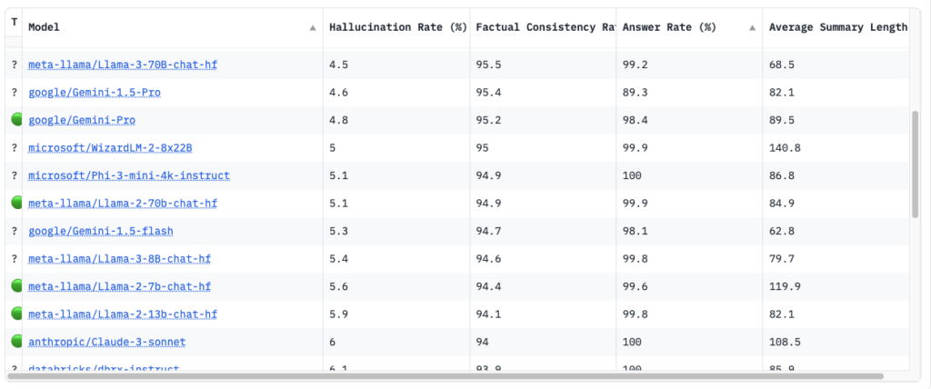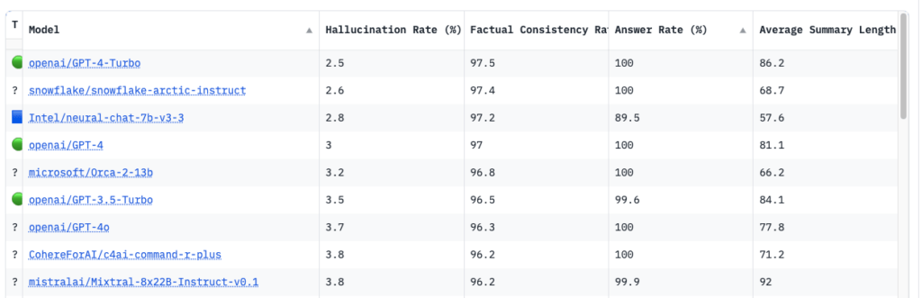 Our team was able to quickly evaluate these models for their tendency to hallucinate using Hughes Hallucination Evaluation Model (HHEM).