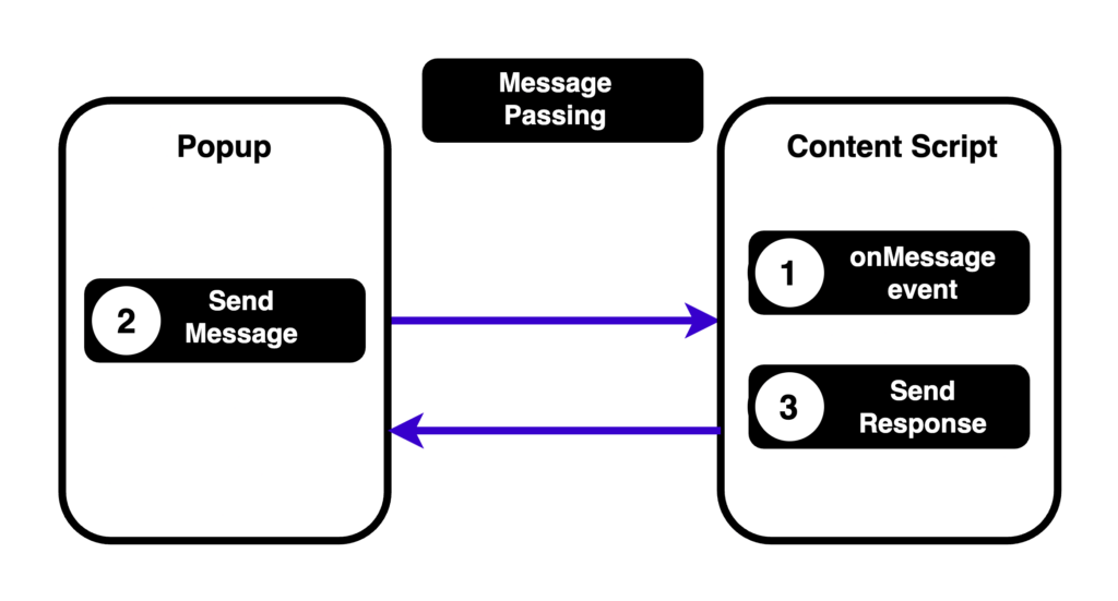 Since content scripts run in a different context, browsers provide Messaging APIs for communication. In Sankofa, we are using the Plasmo messaging API. Here is the workflow for passing information: