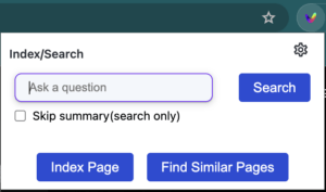 - Indexing: as you visit a webpage, you can opt to index its content in your Vectara corpus. You can click on the index button in the extension drop-down or index selected text from the context menu. You can also configure “auto-indexing” – in this case, pages will be indexed automatically in the background when you visit the page, or after a certain delay (like 5 seconds).