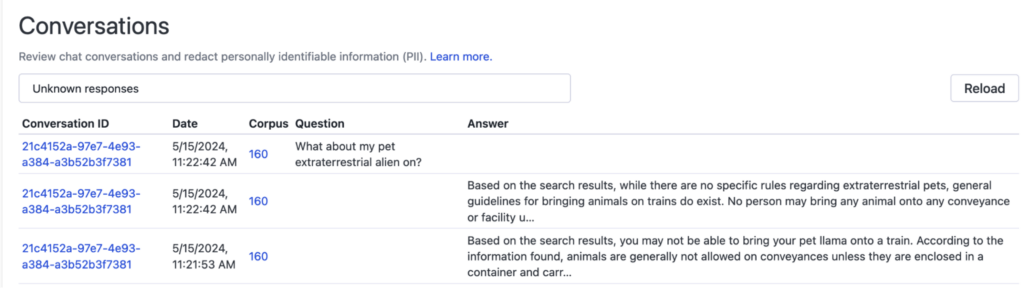 With the new semantic conversation search feature released in Vectara today, you can now find instances where the information wasn’t known: