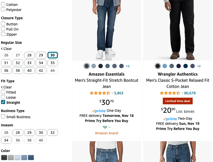 Figure 1. An eComm website example of metadata via faceted search attributes