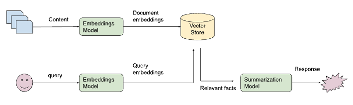 When a user issues a query to a chain in LangChain, there are multiple steps before the response is available to the user: calculating embeddings, comparing the embeddings to document embeddings (in the vector store) to retrieve the facts, and finally calling the summarization model.