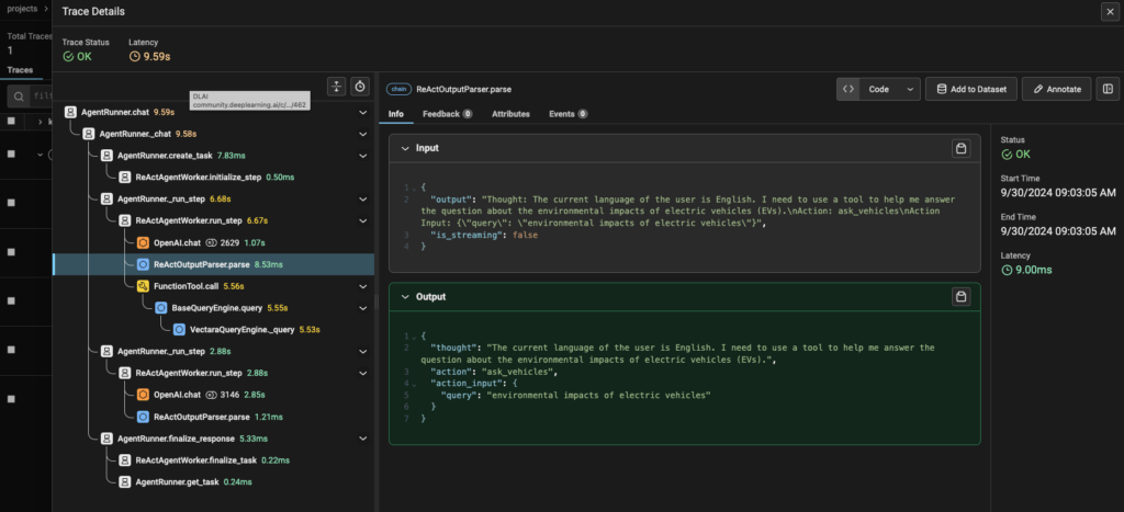 Now that our EV assistant is ready, let’s add some observability using the integration with Arize Phoenix. This will allow us to see what happens during the query and understand how it works.