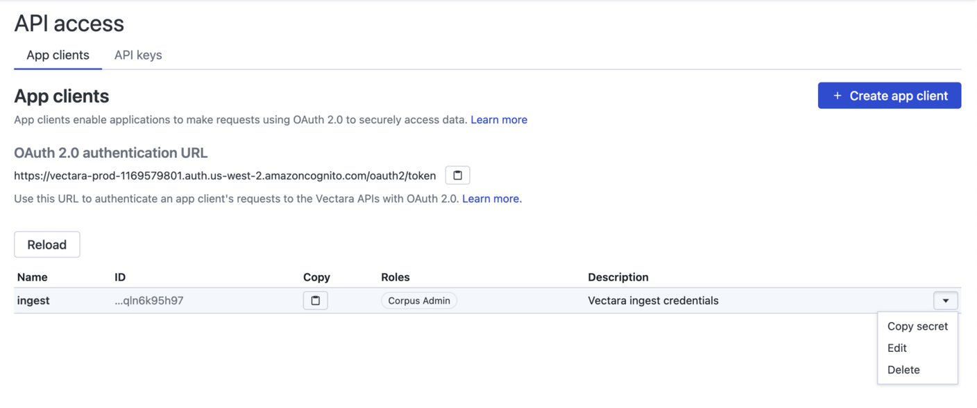 Before we start, we need two items from the Vectara side OAuth 2 configuration: the Client ID
