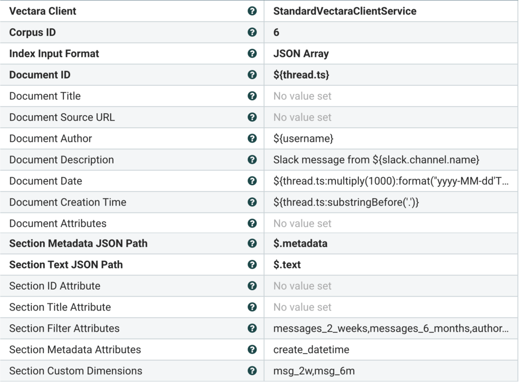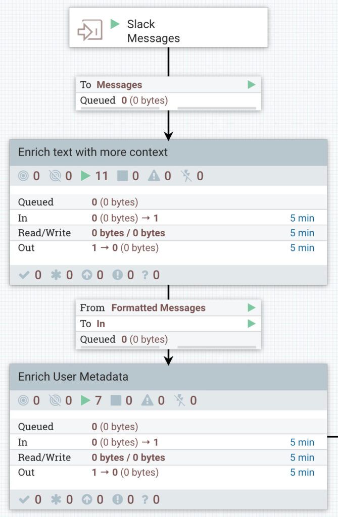 From this point, we forked the data flow to further enrich the Slack messages with additional metadata needed for Vectara. We then proceeded to loading the content: