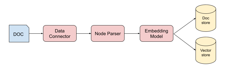 As shown in figure 2, when ingesting data into a VectorStoreIndex, data is processed locally taking advantage of multiple components like Data Connectors and Node parsers.