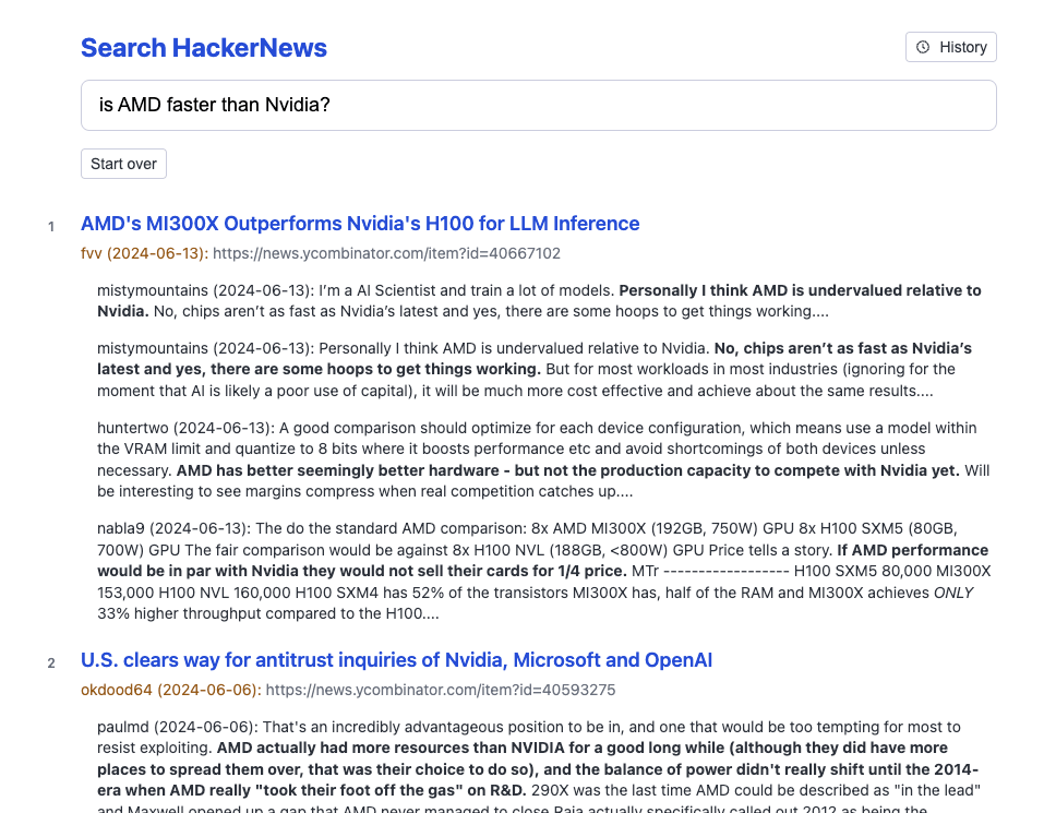 So I decided to build a new search experience for Hacker News, powered by Vectara’s retrieval engine to see if it provides better results. It is available for anyone to use here: