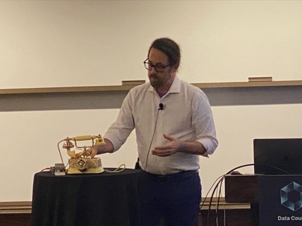 Aaron Funk Taylor demonstrated live a data streaming and schema management solution he developed for a large DevOps platform. It was true modern data management at the edge with a hardware example using a rotary phone that created events in Apache Kafka. Check out the video of the live demo.