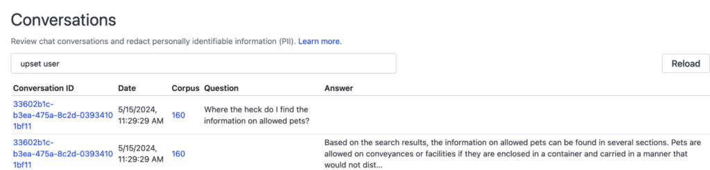 With the new semantic conversation search feature released in Vectara today, you can now find instances where the information wasn’t known: